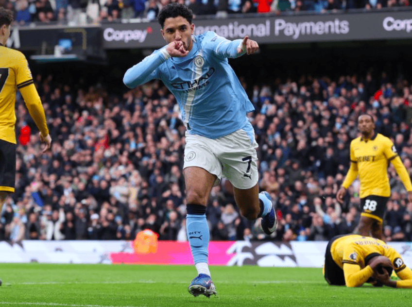 面对狼队,瓜迪奥拉对首发阵容进行了调整,新援格伊即插即用,哈兰德则坐在了替补席,马尔穆什首发登场。